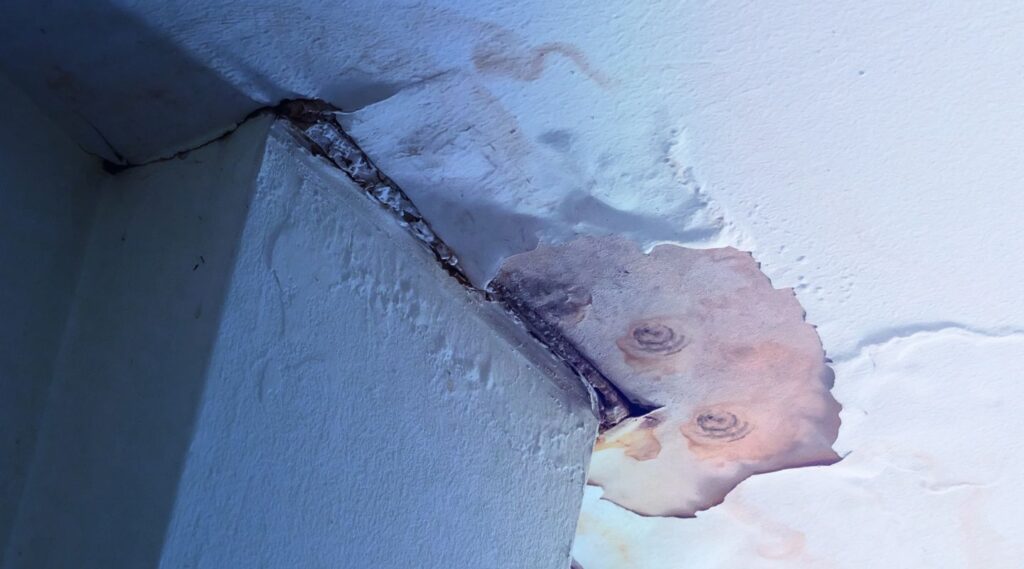 Signs of Water Damage and Potential Ceiling Collapse